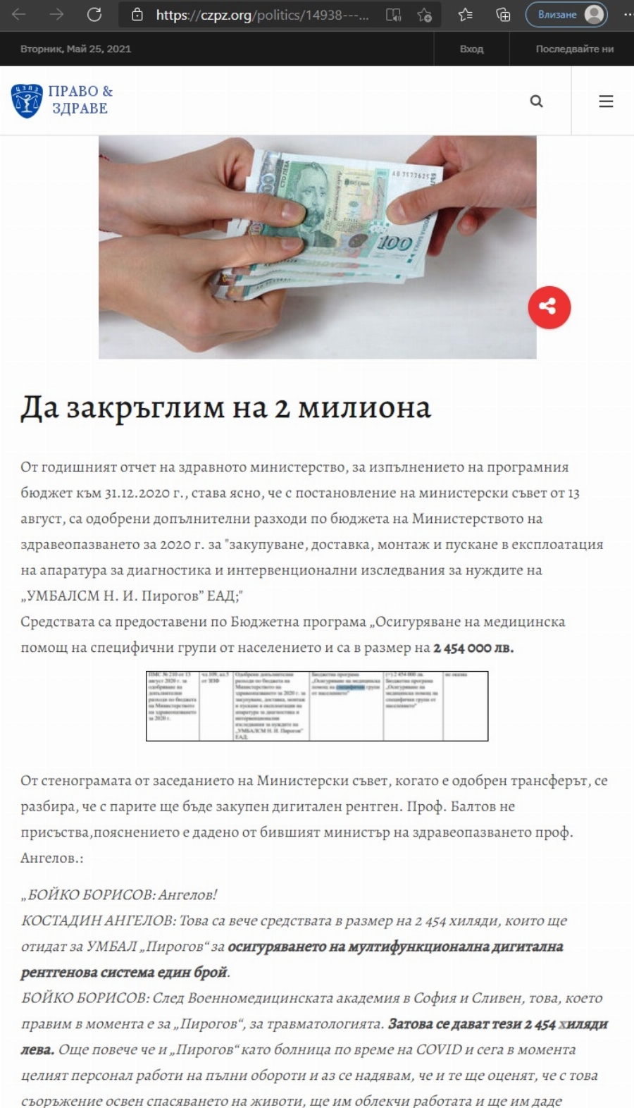 Закръглили ли са в Пирогов 1,15 млн. лв. на 2 млн. лв. или сайтът на служебния здравен министър заблуждава?