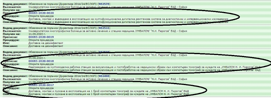 Справка в Агенцията за публични поръчки сочи, че на 11-ти юни предходната година е оповестена за образна диагностика, като.