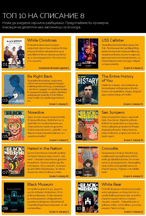 ТОП 10 НА СПИСАНИЕ 8 Може да гледате сериите разхвърляно. Представяме ви примерна ранглиста на десетте най-запомнящи се епизода.
