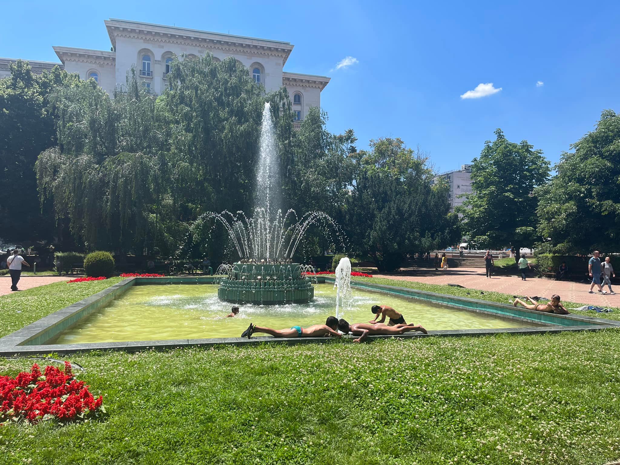 Става все по-горещо и все по-горещо... през днешния ден ни чакат оптимални температури сред 32° и 37° - тези жеги накараха деца от София да се съблекат голи и да цопнат в фонтан.
