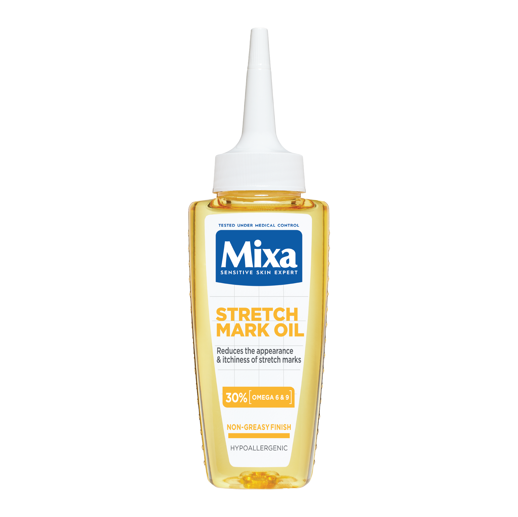 на MIXA хидратира кожата и потвърдено понижава видимостта и цвета на стриите с 33%*. Подходящо е даже за тези с сензитивна кожа и не съдържа аромати.