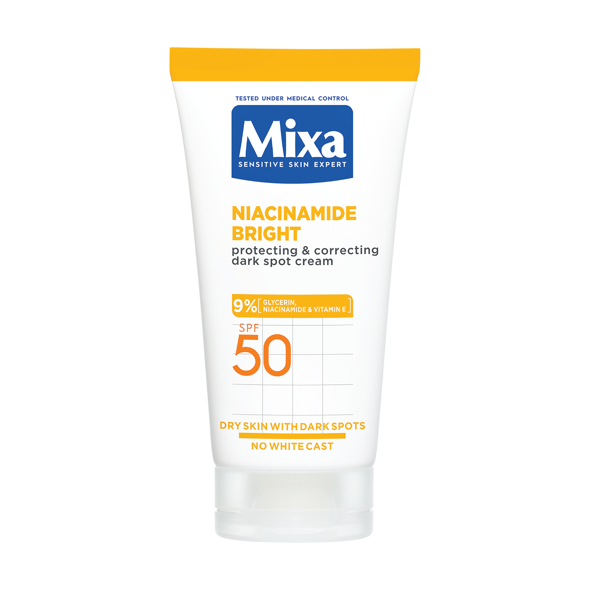 Ниацинамидът е наложителна съставна част и при справяне с пигментните петна. Колкото повече време прекарваме навън през топлите сезони, толкоз по-вероятно е да се появяват тъмни сектори върху лицето, ръцете и други елементи от кожата, които постоянно излагаме на слънце. Това се дължи на нарасналото произвеждане на меланин - пигмента, който дава цвета на кожата ни. Кремовете MIXA Niacinamide Bright изравняват тена и понижават интензитета на петната, без значение от пола и от цвета на кожата.