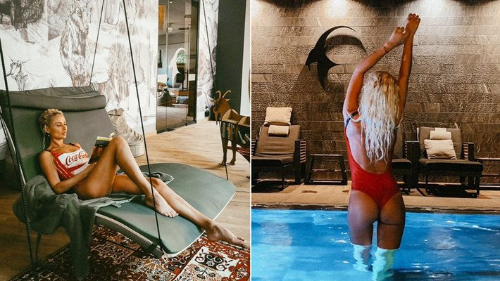 Стегнато дупе в червен бански показва снахата на продуцента Магърдич Халваджиян Александра Енева. Секси мацето, което е хореограф на шоуто " Като две капки вода ", отиде на СПА процедури във Велинград.