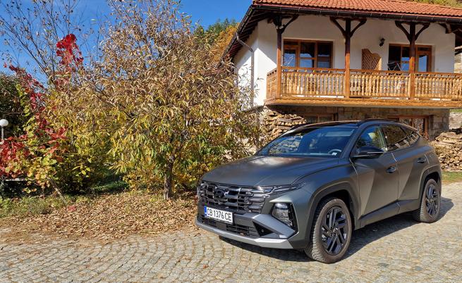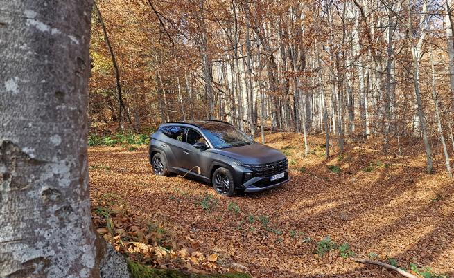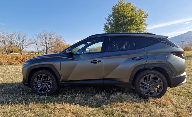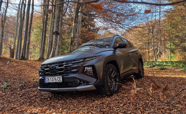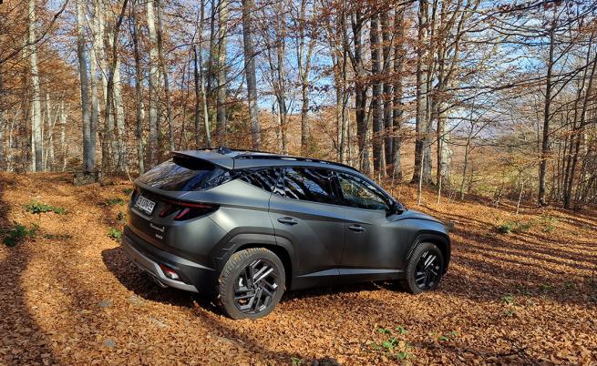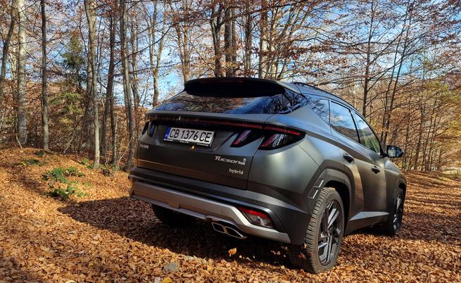 Аз тествах HEV-версията с предно, една от отличителните черти на която е гигантският багажник с размер от 616 л, което е с един над този на Tiguan, въпреки 48-меката хибридна версия да е единствено с 546 л. Другата отличителна линия е междинният разход (по каталог) от 5,6 л. Той може да се реализира при шофиране най-вече в града, където 1,5-литровата батерия ще задвижва повече единствено електромотора. Но даже и отвън града, с трима на борда и обичайно цялостен багажник, върнах Tucson при 7,1 л/100 км междинен разход.