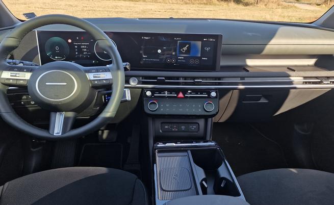 Най-осезаемата смяна е обвързвана с въвеждането на панорамния закривен екран, формиран от два 12,3-инчови екрана като в Ioniq 5 и Ioniq 6. Воланът е нов, 3-спицов и по-конвенционален от досегашния. Вентилационните отвори към този момент са ситуирани през средата на арматурното табло, а не както преди по горния му борд.
