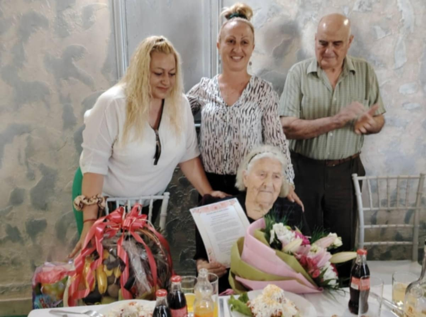 „ Вашата вековна житейска история е освен мотив за празник, само че и източник на почитание и благодарност от страна на всички нас. Достигнатата от Вас възраст е знак на блажен живот и доказателство за цената на добротата, търпението и обичта към фамилията и хората “, се показва в приветствения адрес, който бе връчен на рожденичката. Подаръци и цветя й сервираха кметът на селото Катя Тодорова и общинският консултант Вили Пехливанска. „ Сто години живот е благословия от Господ. Още дълги години здраве, благополучие и топлота, заобиколена от най-близките хора “, пожелаха те на рожденичката.