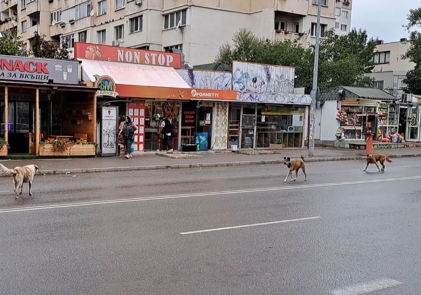 Глутница безпризорни кучета вилнее по една от улиците на квартала.