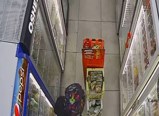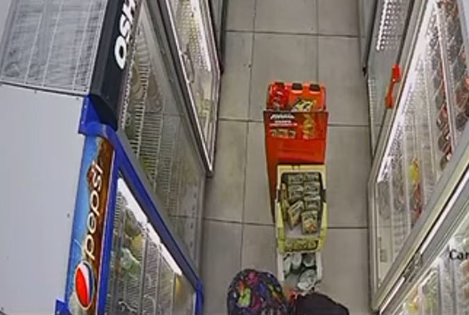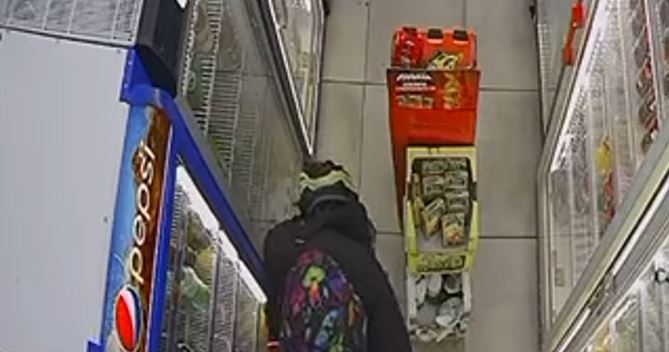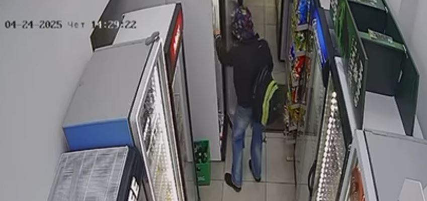 Единият на няколко пъти се доближава до ледник, отваря го и взема стока. После отива към ъгъла, обръща се с тил и пъха движимостите в раницата си.