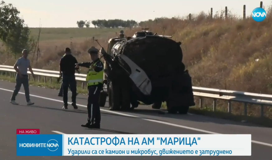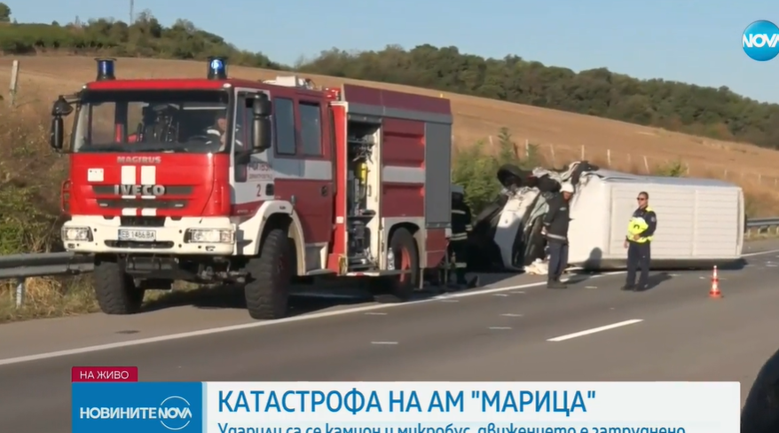 Тежка злополука е станала сред микробус и камион на автомагистрала „ Марица “.