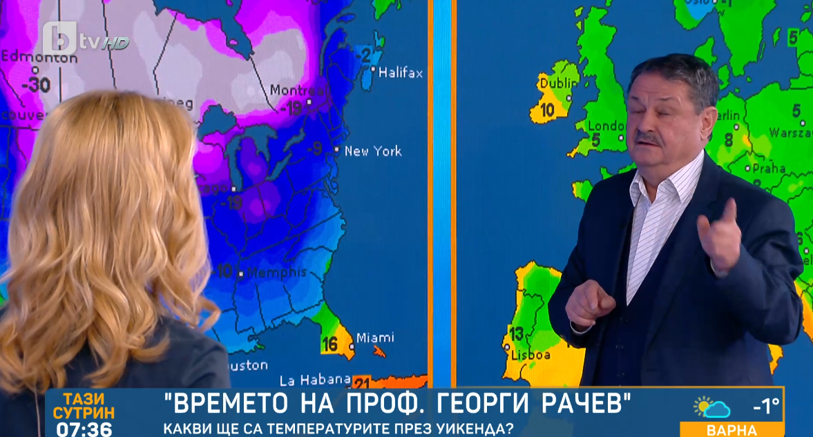 Като тръгне на юг студения въздух, нищо през междинните щати не го стопира да стигне чак до Хюстън на брега на мексиканския залив, а това е на практика екваториален климат с температура минус един градус минималната в понеделник, сподели Рачев.