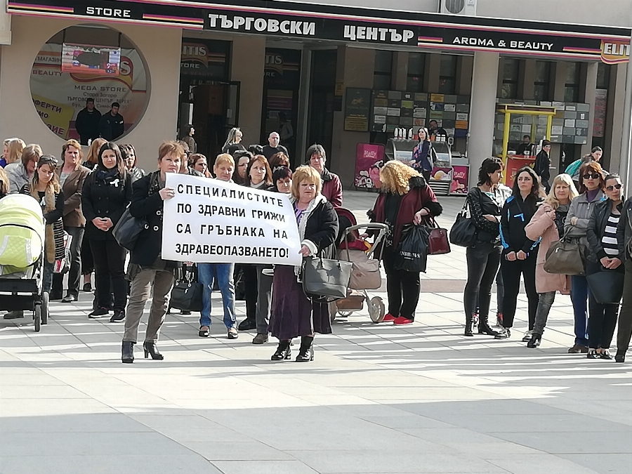 Стотина медицински сестри излязоха и през днешния ден на митинг в Стара Загора. Те упорстват здравния министър Кирил Ананиев да предприеме бързи ограничения в осъществяване на настояванията им да няма търговски сдружения в опазването на здравето, главната заплата за всички експерти по здравни грижи да е е идентична без значение от местоработата или собствеността на болничното заведение, да има регламентирани правила за спомагателните хонорари и да бъдат върнати медицинските стандарти.