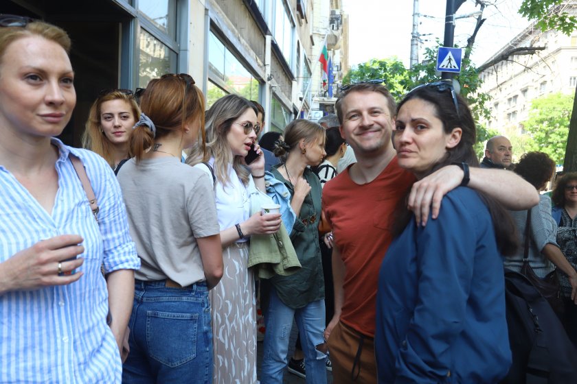 Пред Младежкия спектакъл на бул. " Дондуков " обаче пристигнаха съвсем всички шефове на театри в столицата. Сред тях бяха шефовете на Сатиричния - Калин Сърменов и на Театър " София " - Иреней Константинов. Актьори на свободна процедура и актьори от трупите на Народния, Театър " 199 ", Малък градски спектакъл " Зад канала ", Театър " Възраждане ", Театър " Българска войска ", Театрална работилница " Сфумато ", Театър НАТФИЗ, студенти от Театралната и кино академия. Да поддържа сътрудниците си пристигна и ръководителят на Съюза на артистите Христо Мутафчиев.