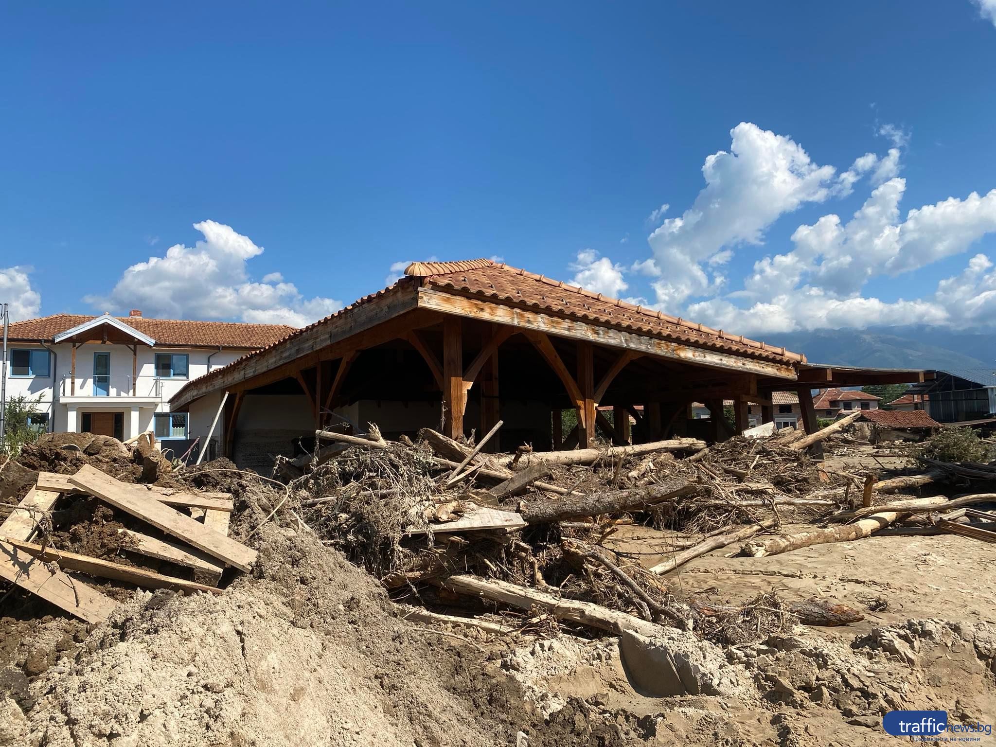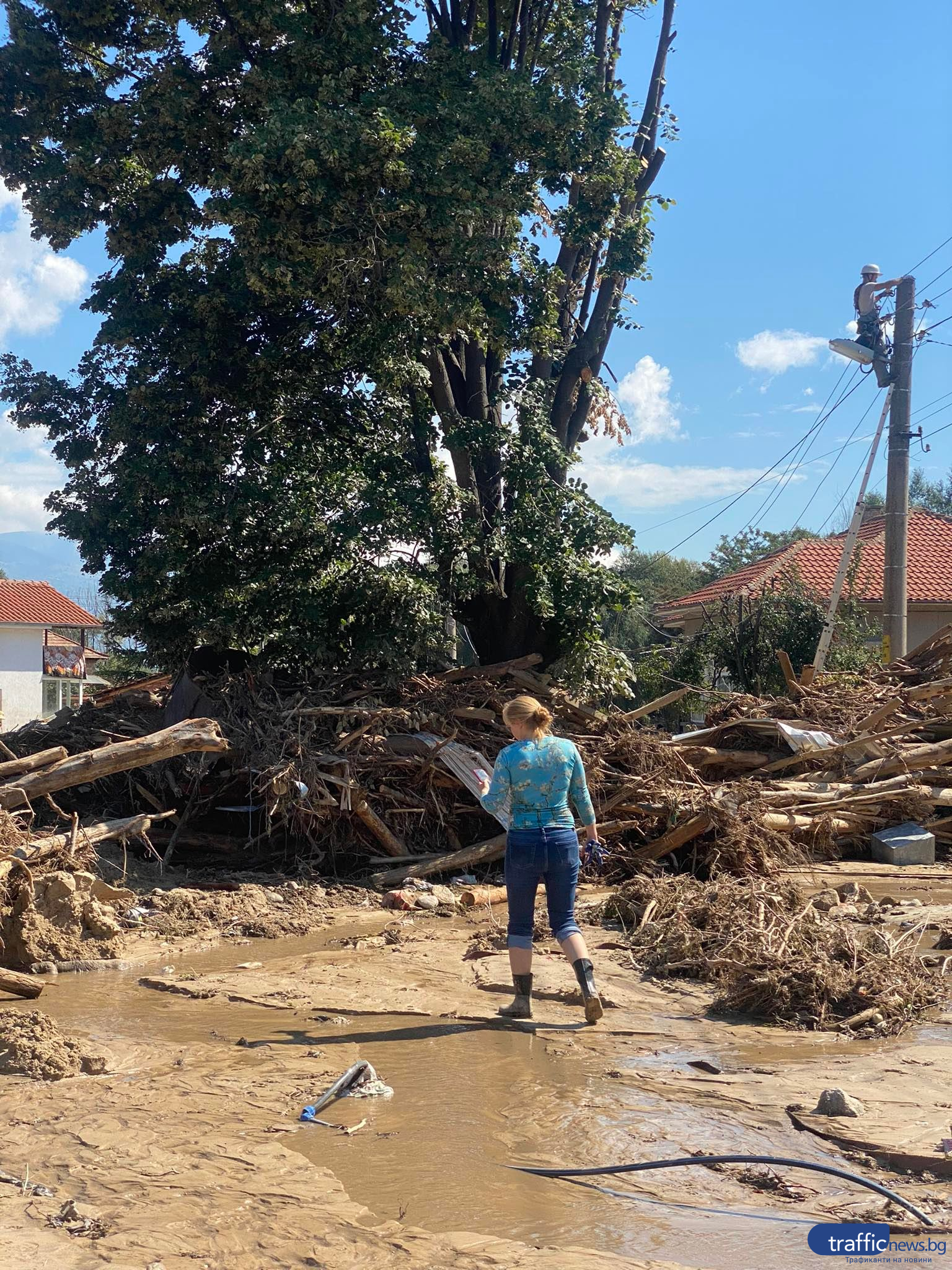 Четири дни след стихията, пейзажът в тези села е съвсем недействителен. По-голямата част от улиците и дворовете на локалните поданици са покрити с близо метър наслойка от пясък и кал. Мазетата и първите етажи на къщите са цялостни с тиня, а дървета и насаждения са заринати съвсем до клоните. Огромни камари клони и стволове са струпани като барикади по улиците и в дворовете. Автомобили, отнесени от стихията, затрупани животни.