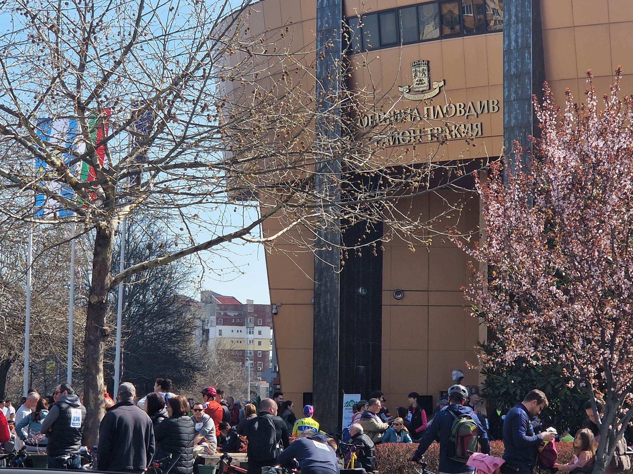 Днес хора от всички възрасти на колела, ролери и скутери минаха през маршрута от кметството в „ Тракия ” по велоалеите на бул. „ Освобождение ”, Асеновградско шосе, бул. „ Санкт Петербург ” до новия състезателен парк в „ Тракия ”.