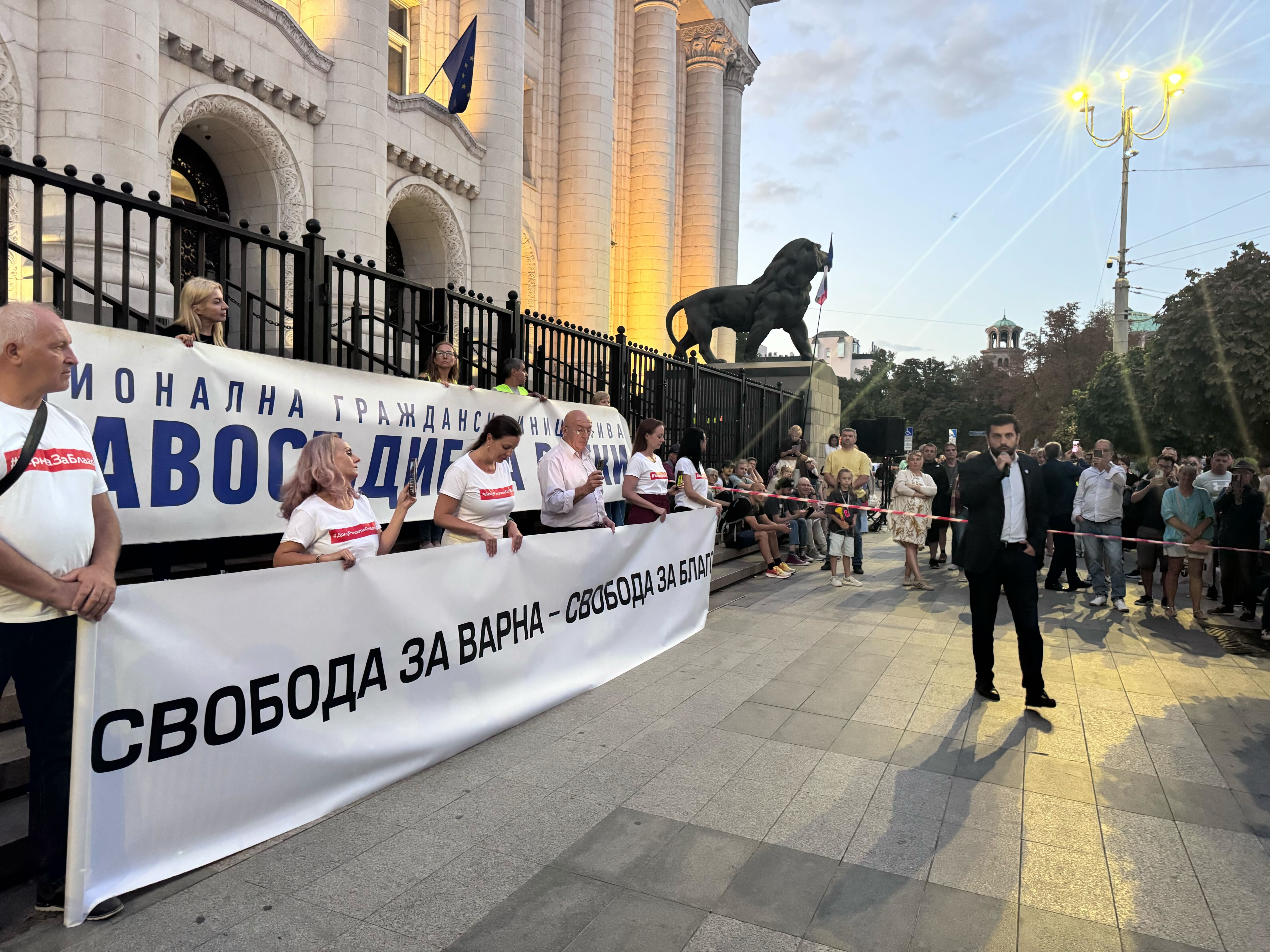 Гражданите, събрали се в негова поддръжка, скандираха " Свобода за Благо " и носеха плакати с послания като,,Свобода за Варна, независимост за Благо " и,,Не желая прислужник, желая основен прокурор ".
