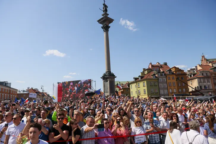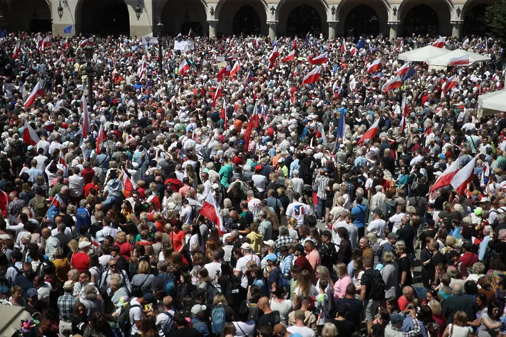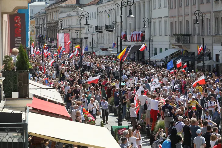 Стотици хиляди протестиращи се събраха във Варшава на шествие, което демократичната съпротива разгласи за тест за способността си да постави завършек на близо осемгодишното националистическо ръководство по-късно тази година, оповестяват от БГНЕС.