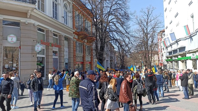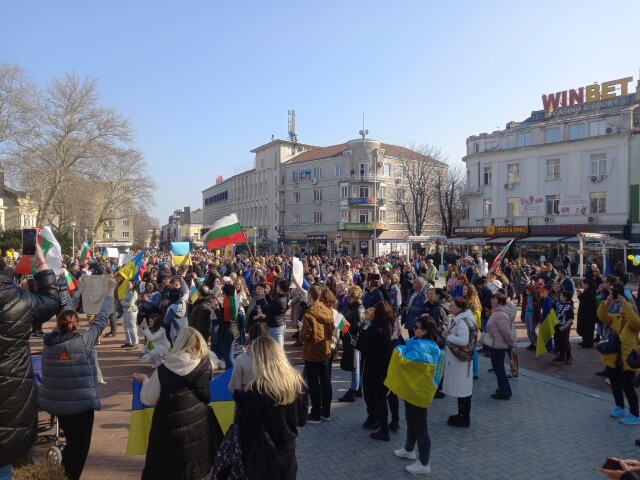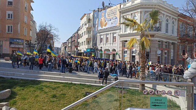 Хиляди излязоха на митинг и в Пловдив. Пловдивчани и посетители на града, както и украинци, които живеят от години в Пловдив, шестваха по централната улица и скандираха " Не на войната " и " Русия агресор ".