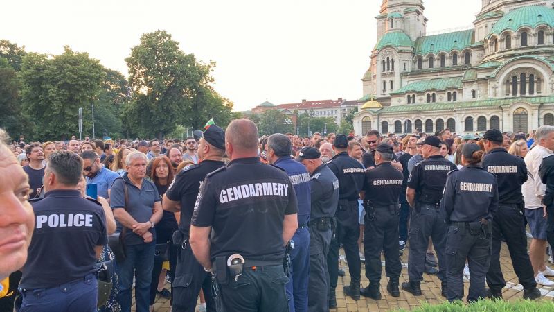 Към 22.15 депутатите от " Възраждане " започнаха да излизат от постройката на Народното събрание, охранявани от полицейски кордон. Стигна се до стълкновения край служебния вход на Народното събрание и част от протестиращите съумяха да обхванат през кордона и да се втурнат към депутатите, наложи се да се намеси жандармерия. Протестиращите подгониха хората на Костадин Костадинов в посока на Софийския университет. Стана и сборичкване сред протестиращи и почитатели на " Възраждане ". Граждани скандираха " Путин Хуйло! ". Погрешка служители на реда налетяха на репортера от " Актуално " Михаил Митев, който снимаше протичащото се, само че различен сътрудник му се притече на помощ.