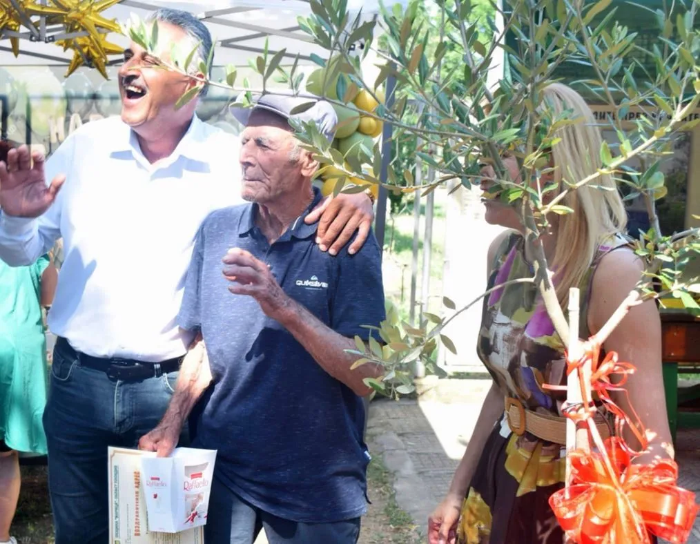 Председателят на Общински съвет Марица Виолета Христодулова подари маслиново дърво на дядо Димо. Тя го поздрави с думите: „ Цял живот си работил и през днешния ден ще те ангажираме с работа. Това маслиново дръвче живее над 500 години и желаеме да го засадиш за спомен на хората от теб “. Дядо Димо избра да го засади в двора, до входа на църквата „ Св. Атанасий “, където хората ще минават по време на празници и ще си спомнят за него, когато го видят.