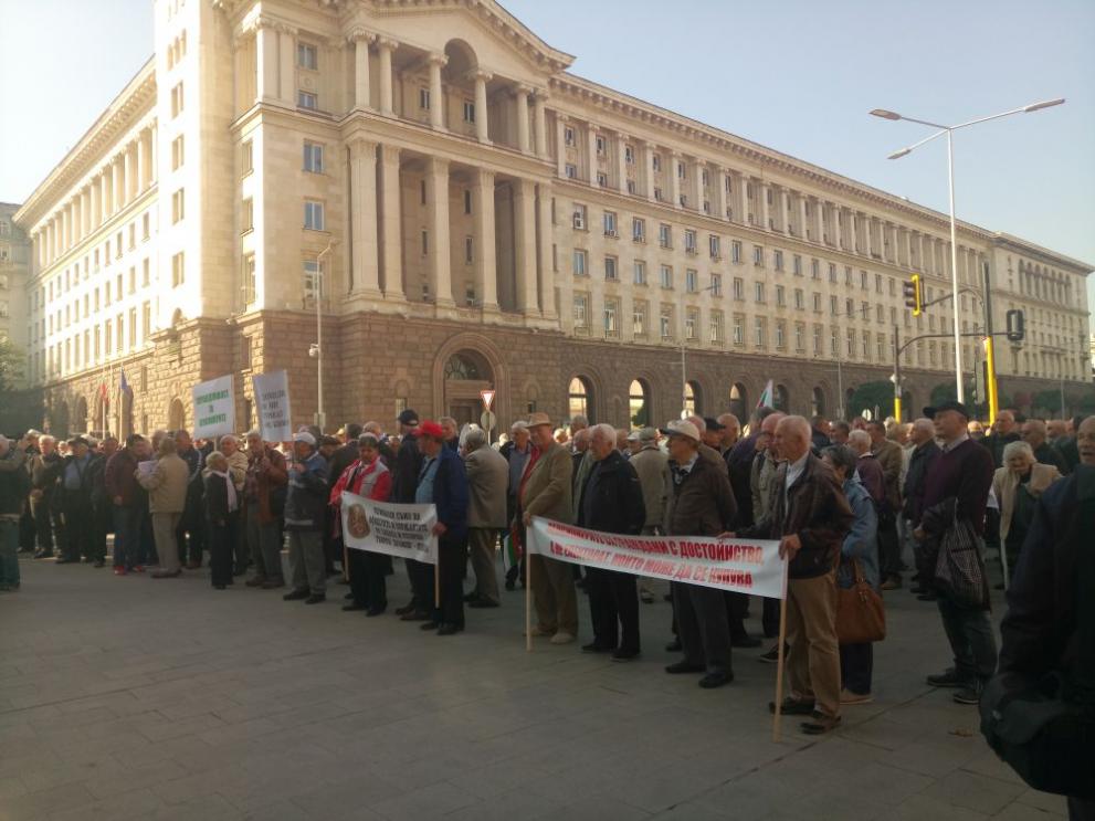 Стотици пенсионери излязоха на митинг пред Министерския съвет. Те упорстват за съответно нарастване на всички пенсии , обвързване на минималната пенсия с минималната заплата, както и отпадане на тавана за пенсиите .