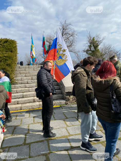 Десетки българия се появиха със флагове на Русия и скандираха лозунги за величието ѝ. Те освиркаха локалната власт и министъра на защитата Атанас Запрянов. Това провокира ответна реакция и по време на тържественото слово, до момента в който шефът на библиотеката изброяваше народността на починалите войни, се чуваха освирквания срещу Русия. Привържениците ѝ отвърнаха с крясъци: " Малко ви остава ".