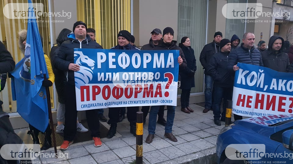 Стотици чиновници на структурите на Министерство на вътрешните работи в Пловдив се събраха на митинг пред постройката Областната дирекция. Те приканиха за незабавна промяна и желаеха тя да бъде действително съобразена с изискванията им на труд.