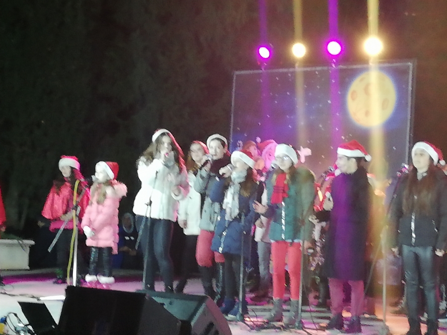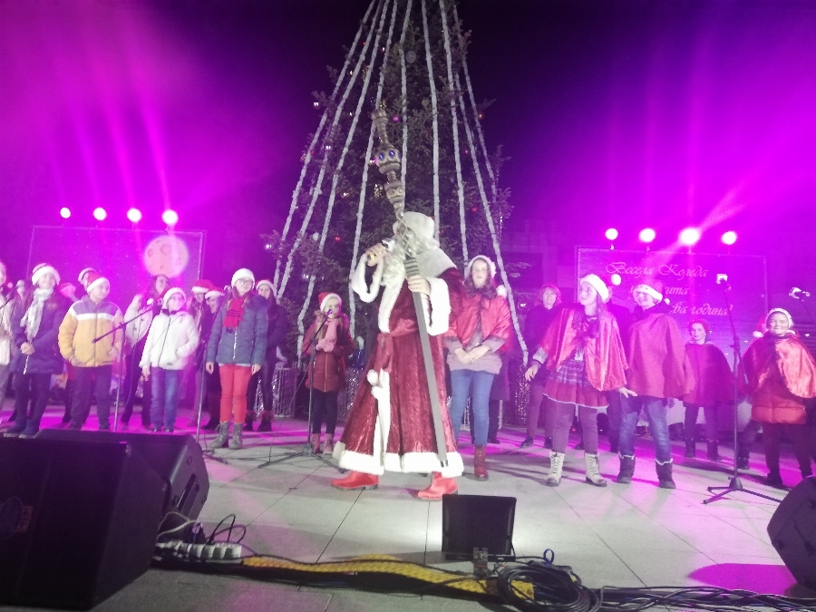 За радостното въодушевление преди тържественото запалване се погрижиха помощниците на положителния дъртак от Детска театрална школа " Фантазио " при Народно читалище (НЧ) " Родина-1860 ", които разпитваха децата на площада дали са слушали, дали са писали на Дядо Коледа и чакат ли дарове.