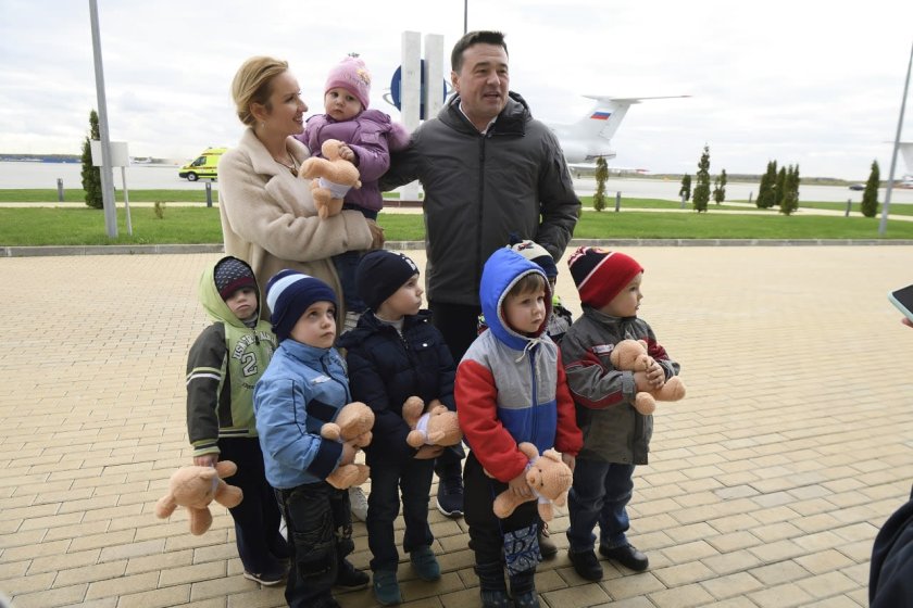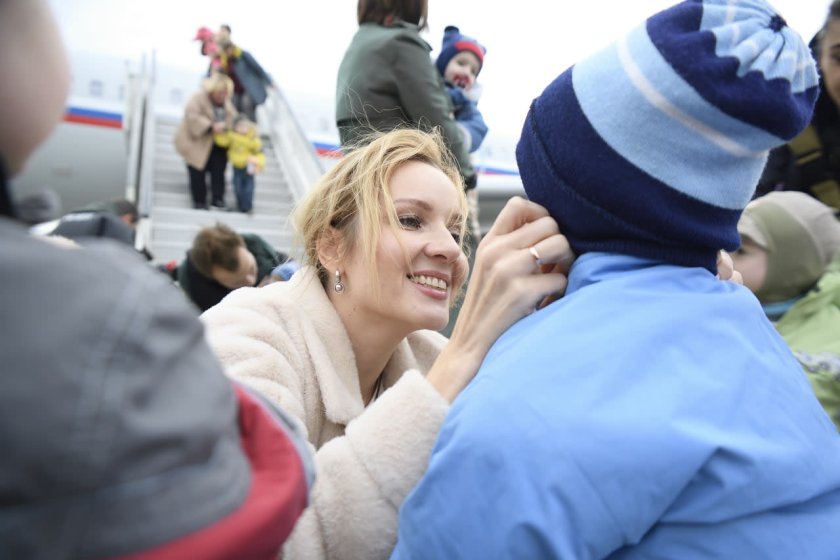 " Добре пристигнали в Москва! " - с тези думи съветският Комисар по правата на децата Мария Лвова - Белова приветства 125 деца от Донецка област, пристигнали със аероплан на съветското Министерство на защитата.