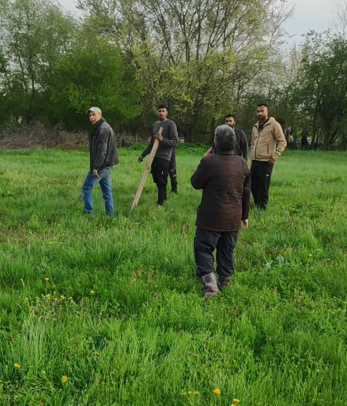 От оповестените видеа ясно се вижда, че петимата мъже носят в ръцете си колове и брадви, в подготвеност да атакуват.