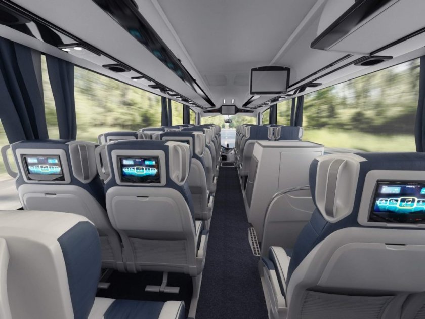 Налични са спомагателни екстри като Wi-Fi, тоалетна, кухненски бокс, мултимедия и даже конферентни маси, което го прави съвършен за дълги пътувания.