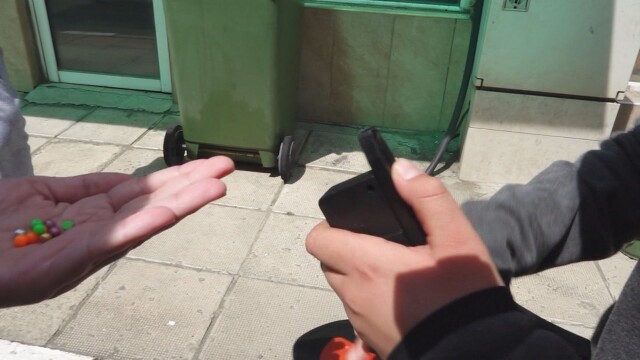Децата са играли с такава пластмасова играчка нощес на улицата, а по пътното платно към момента могат да бъдат открити десетки цветни топчета.