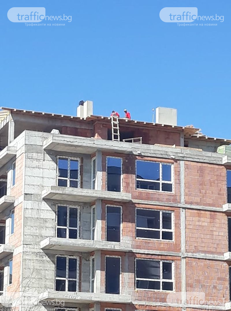 Безопасност? Строители без каски висят от скелета и покриви в Пловдив