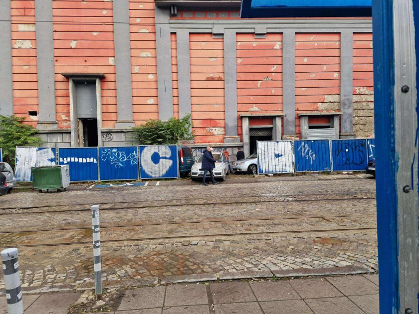 Строителна бригада в запустялата и рушаща се постройка на паметната чалготека „ Син Сити “ видя тази заран зоркото око на Lupa.bg.