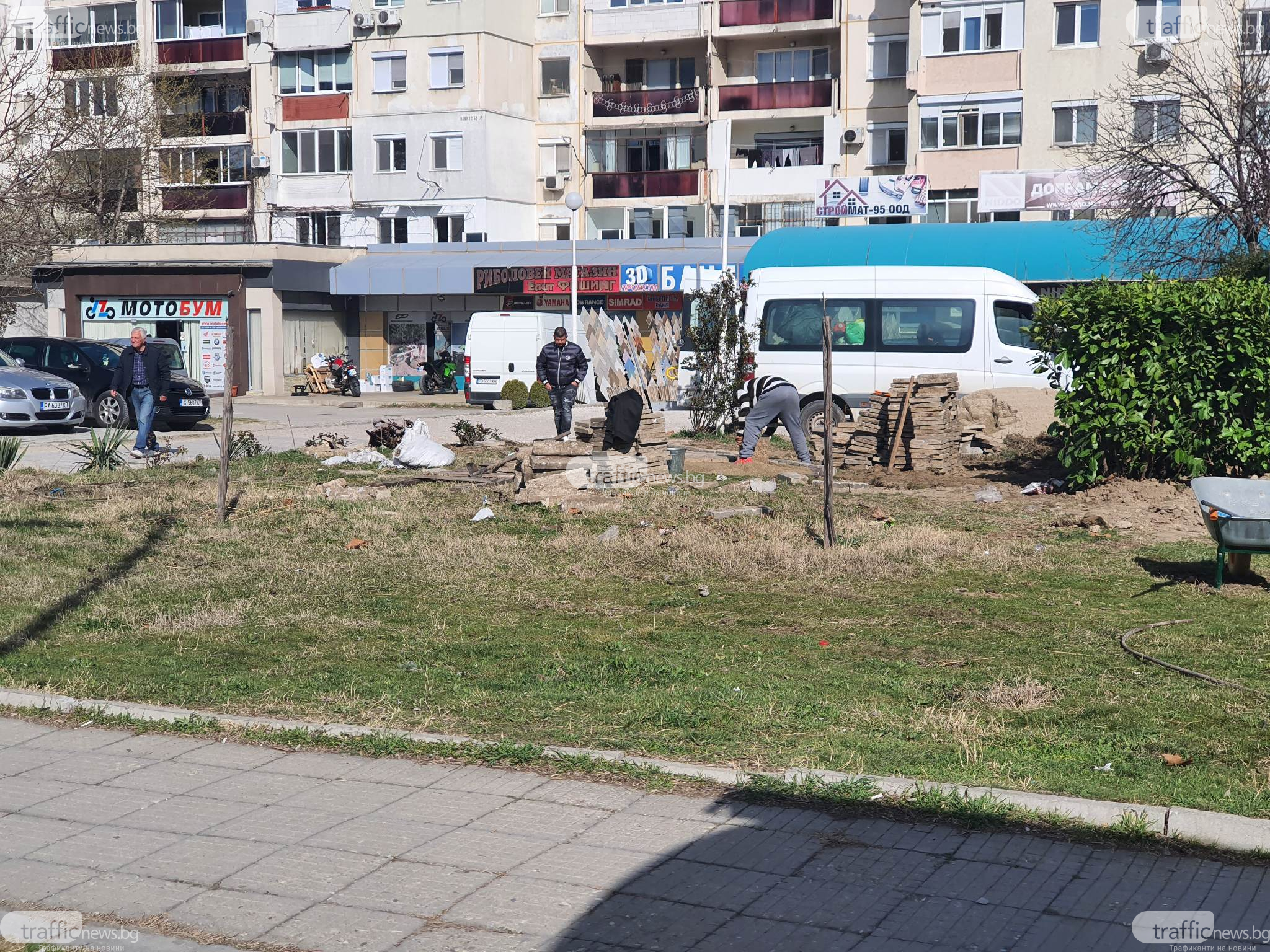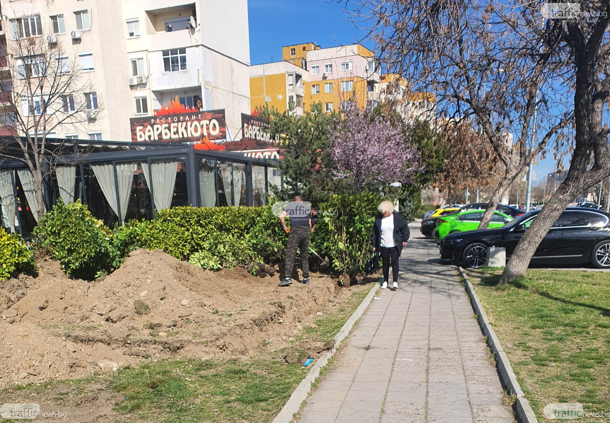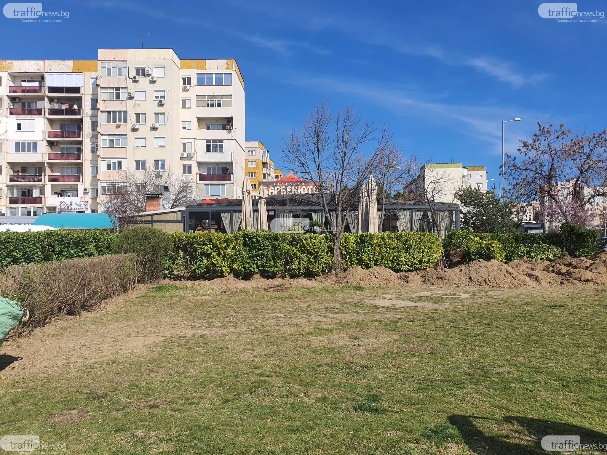 Строителни действия тормозиха поданици на ЖР Тракия. Работници са почнали разкопаване пред ресторант " Барбекюто ", алармира в редакцията на TrafficNews пловдивчанин, който е угрижен, че тихомълком градинката ще бъде усвоена за потребностите на обекта. По думите му дейностите за противозаконни.