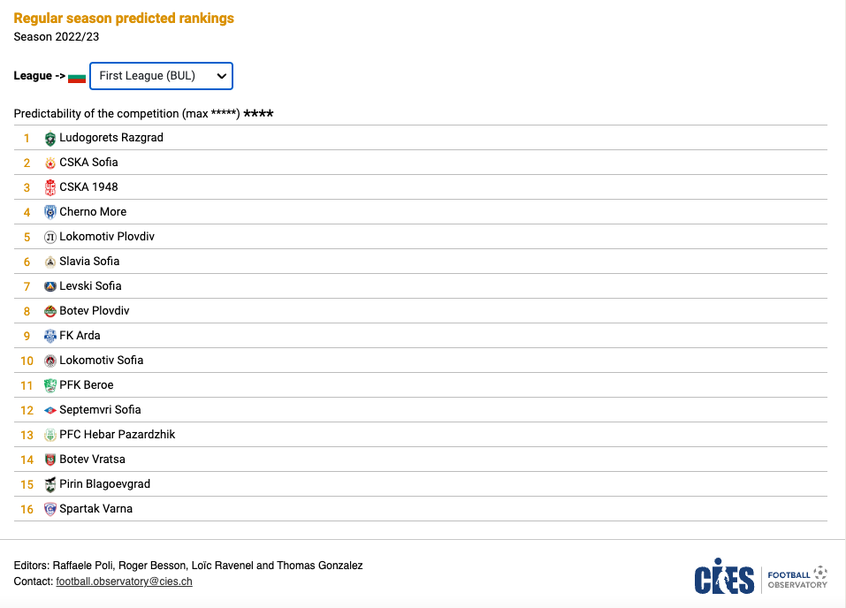 Преди тима на Станимир Стоилов са подредени Черно море, Локомотив (Пловдив) и Славия. Според прогнозите, от efbet Лига би трябвало да изпаднат Спартак (Варна) и Пирин (Благоевград), а Ботев (Враца) ще играе бараж за оцеляване против третия от Втора лига. Хебър и Септември би трябвало да спасят местата си в елита.