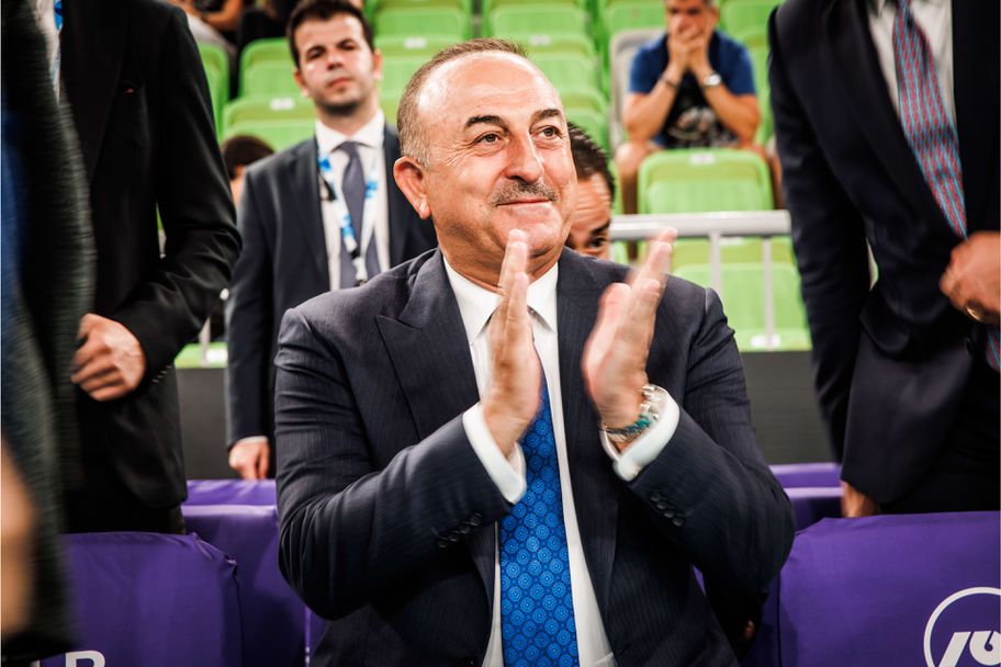във втория си мач от Група Е на шампионата на планетата, игран довечера пред малко над 1000 фенове в зала " Арена Стожице " в Любляна. Срещата онлайн изгледа персонално и министърът на външните работи на Турция Мевлют Чавушоглу.