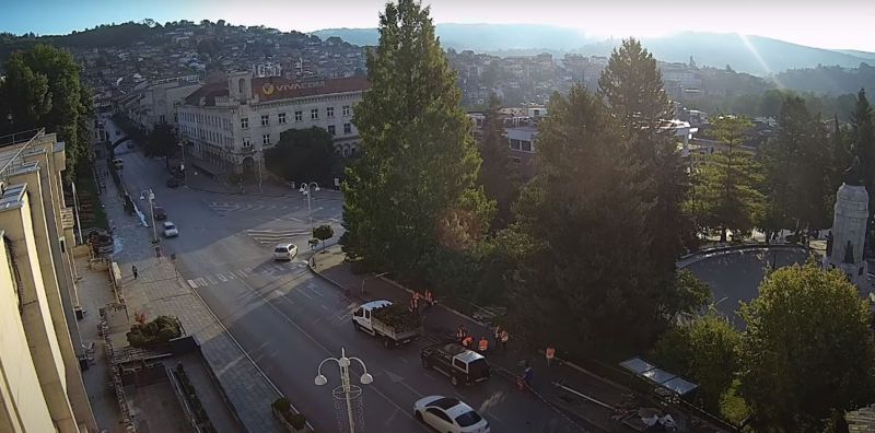 Тази заран вредите от снощната злополука се поправят от общината, както е видно от камерите за улично наблюдаване в града.