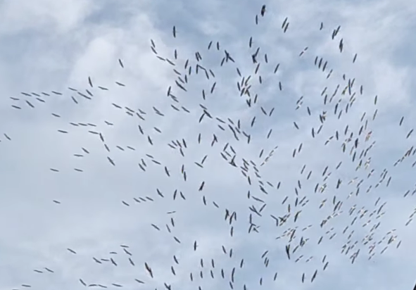 Жена от Варна обаче показа клип по какъв начин огромно ято щъркели кражи над морската ни столица.