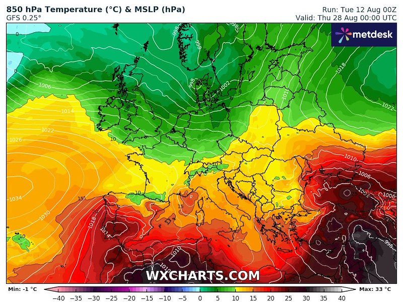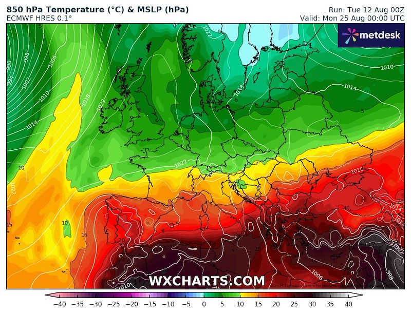 Според последните прогнози на Европейския модел се чака доста намаляване на температурите в цяла Европа поради мощен леден атмосферен фронт от Скандинавия. Този фронт ще бъде първото едва полярно навлизане за сезона и ще провокира сензитивно захлаждане, което за доста страни, в това число България, може да ознаменува края на лятото.