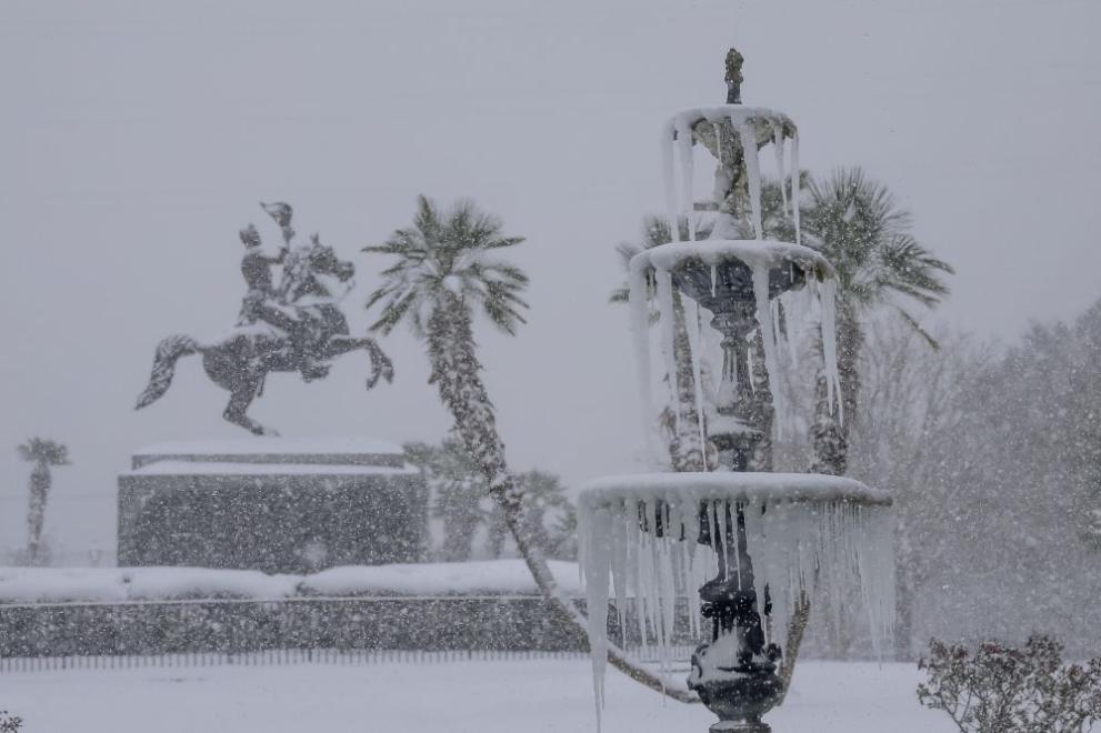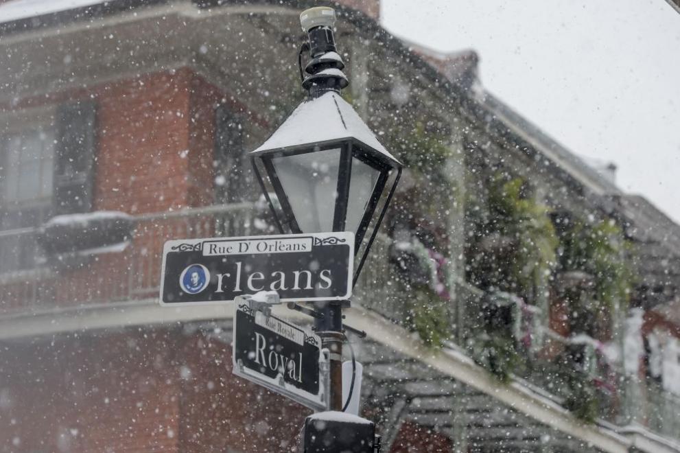 Ню Орлиънс , град, който по-често е обект на тропически урагани, е бил покрит с най-малко седем сантиметра сняг, надминавайки върха за снеговалеж в града за един ден, който датира от далечната 1948 година