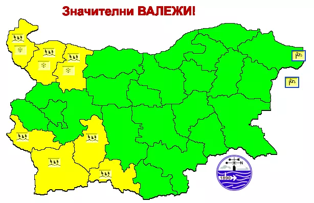 Днес преваляванията от дъжд ще обзет западната половина от страната, а до вечерта и източните региони. Значителни по количество ще бъдат в Югозападна България и северозападните региони. Обявен е жълт сигнален код за превалявания в 7 области на страната.