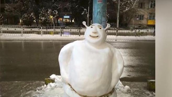В Пловдив се появи един от най-нетипичните снежни човеци. Собственик на денонощен магазин в регион " Северен " решил да позабавлява минувачите и най-много - децата, със статуя на Шрек.