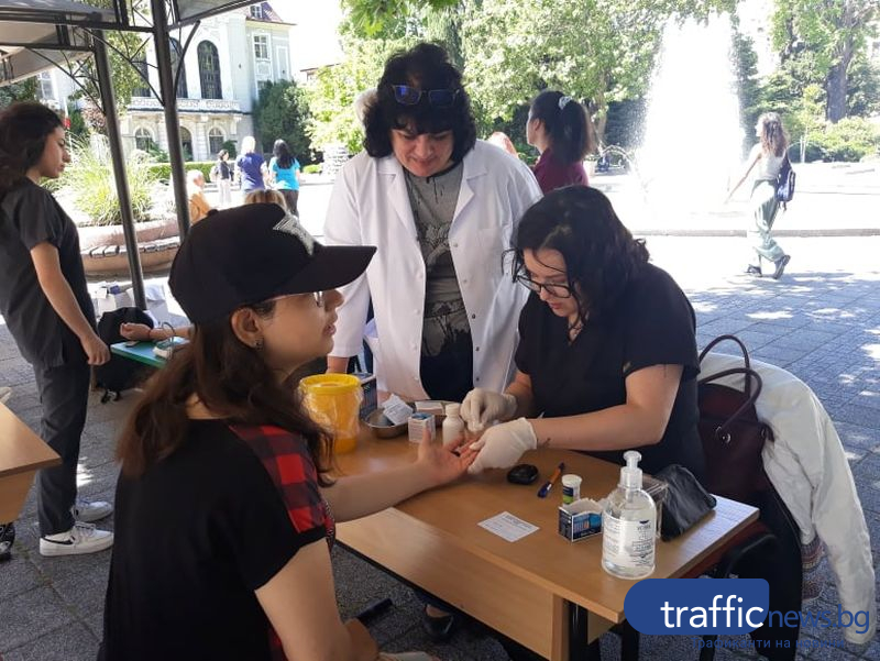 Студенти и преподаватели от Медицинския колеж мерят кръвно налягане и кръвна захар с кауза
