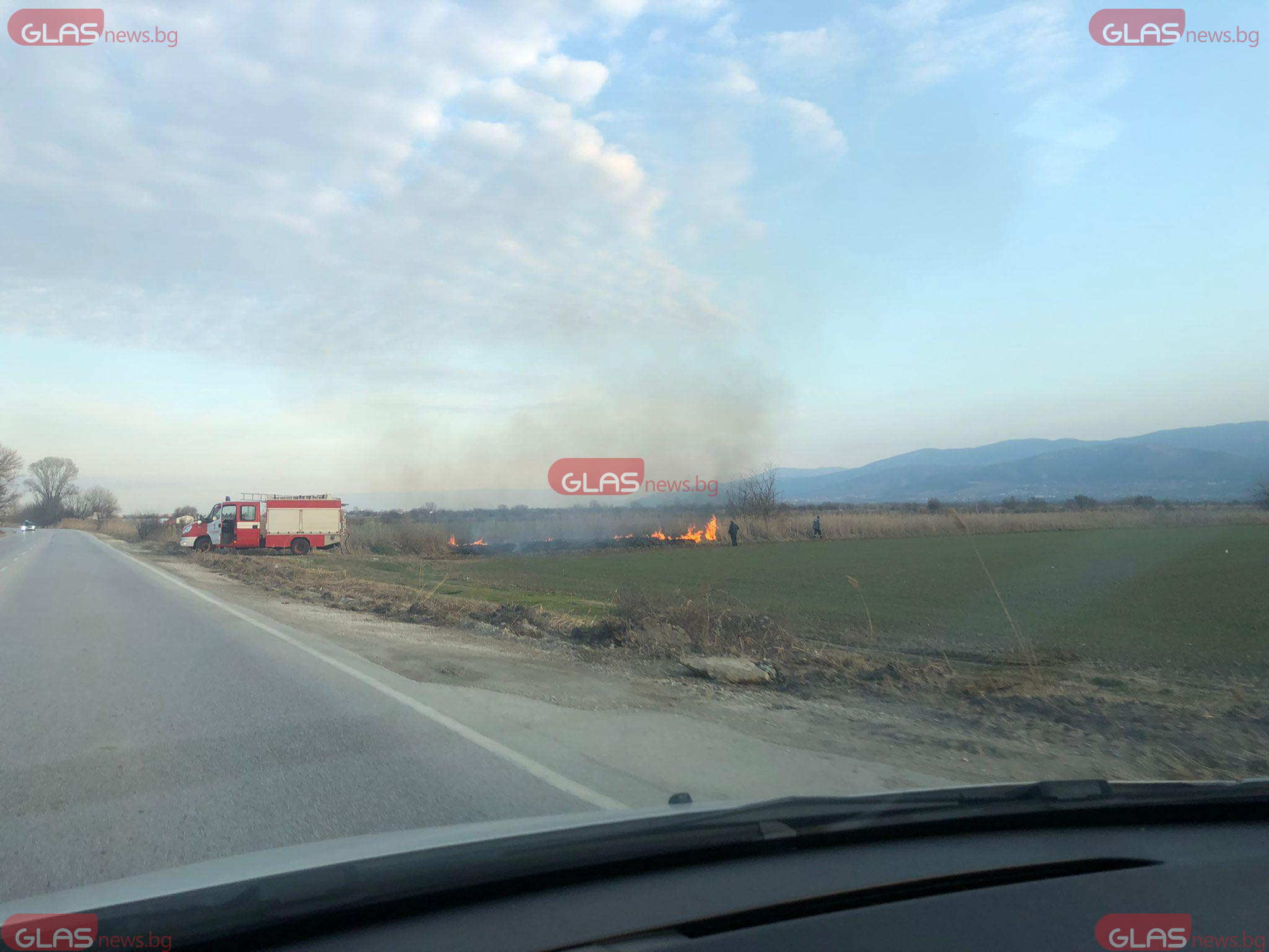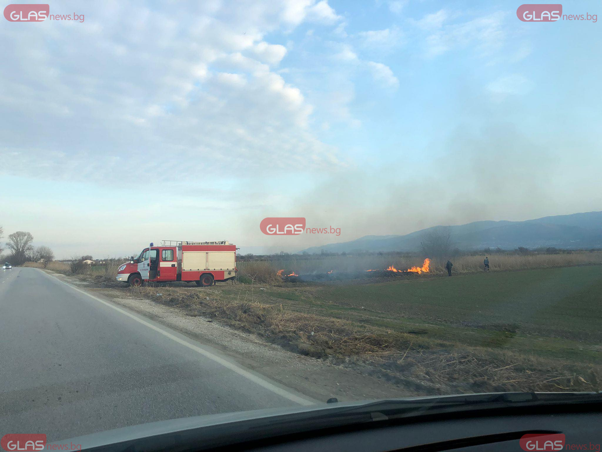 Огън пламна на изхода на Пловдив, на мястото има пожарна СНИМКИ