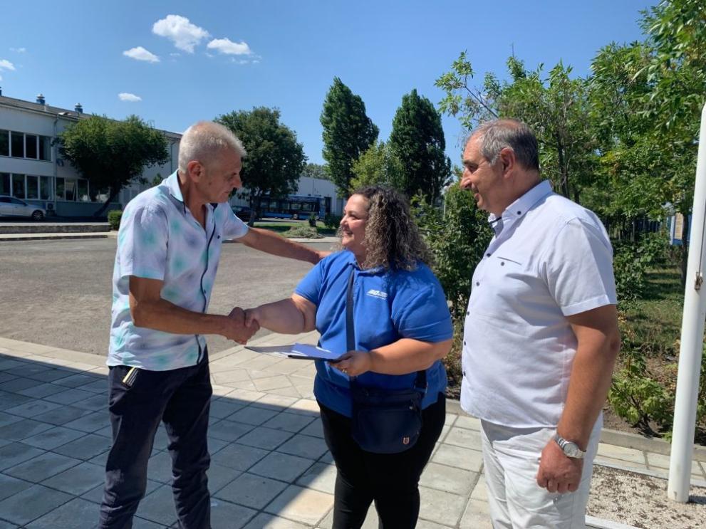 На дамата бе връчено и парично подучване от общинската фирма-превозвач „ Бургасбус ” с шеф инж. Петко Драгнев и синдикалната организация на чиновниците във компанията.