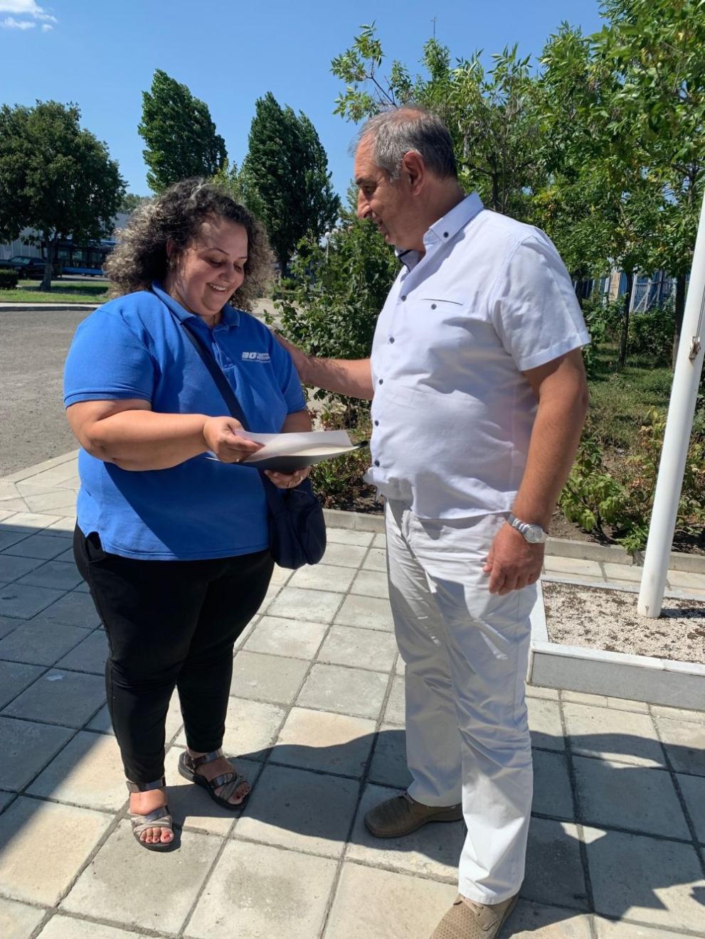 За благородната си постъпка Мария Добрева получи от ОД на Министерство на вътрешните работи признателен адрес, връчен ѝ от краткотрайно изпълняващия длъжността шеф отдел „ Охранителна полиция и КАТ ” старши контрольор Павел Колев.