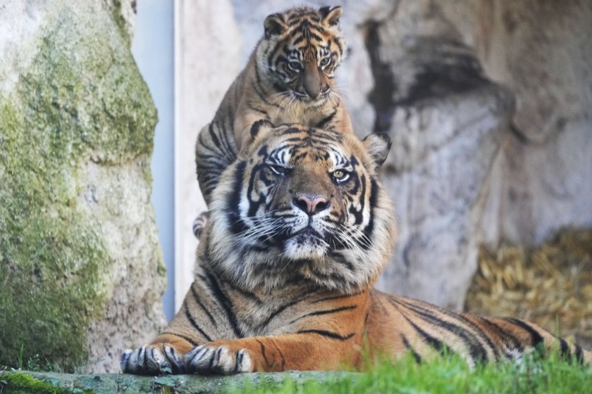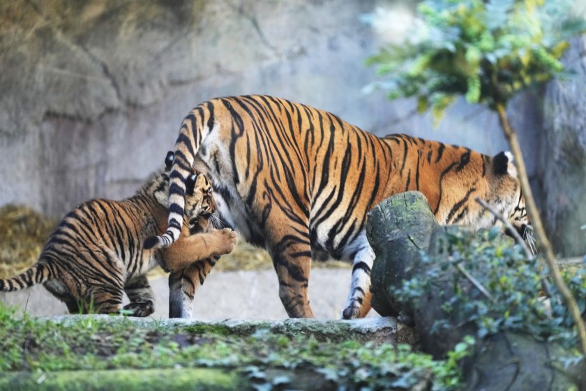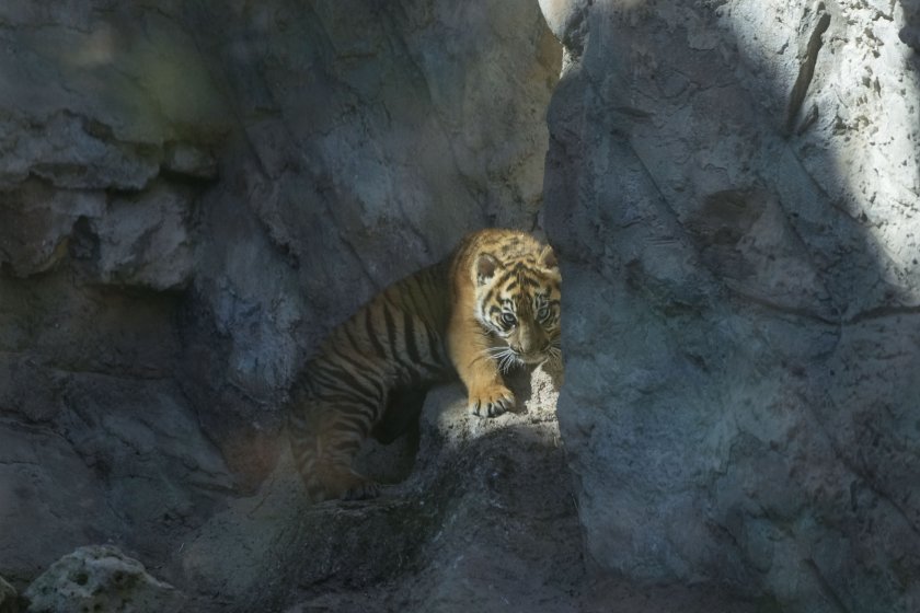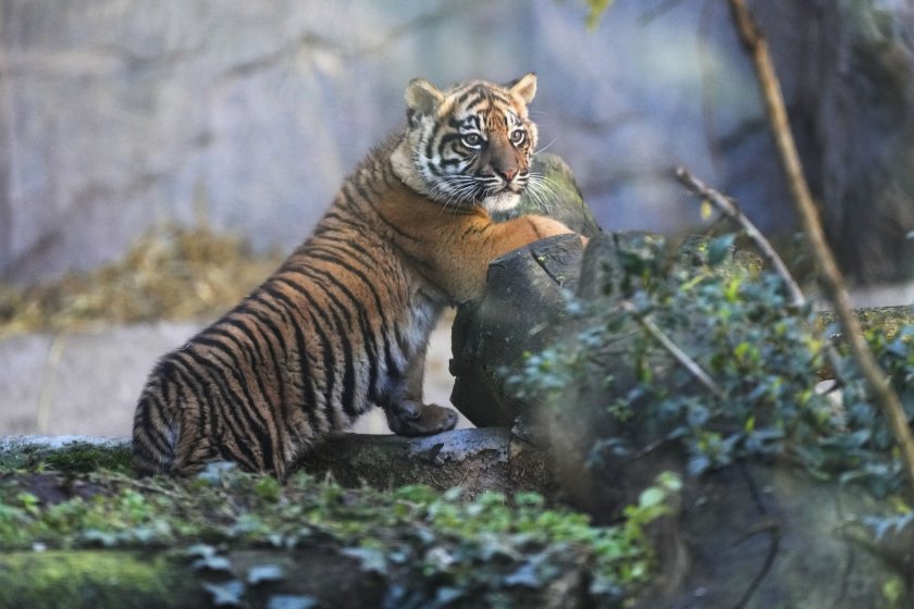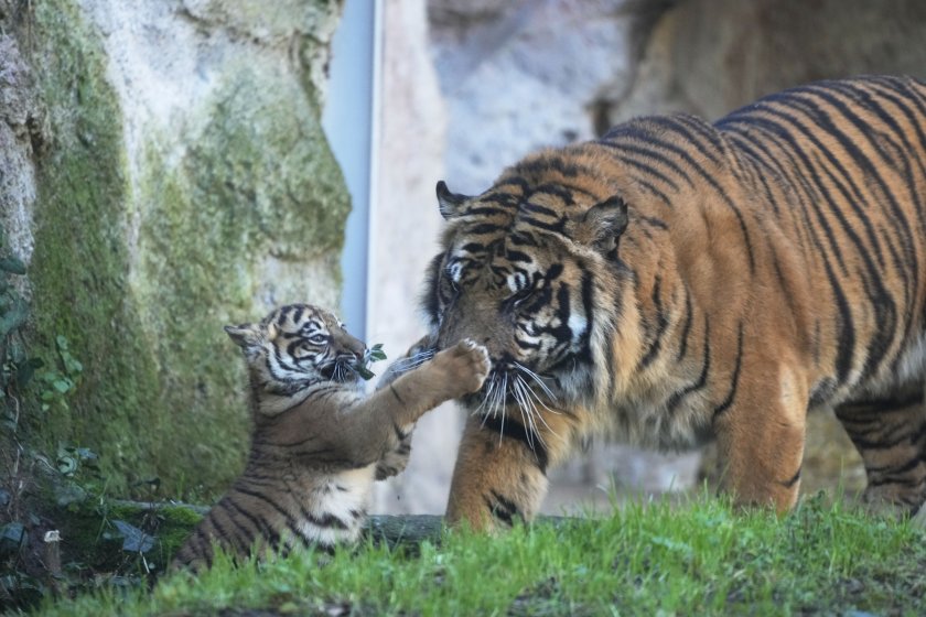 Суматранското тигърче Кала направи първите си стъпки в зоопарка в Рим. Кала се роди при започване на януари- Близо до нея са родителите и Тила и Касих.