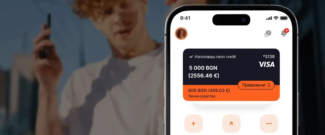 Благодарение на първия в България бутон за незабавно превключване, потребителите могат да изберат на момента да платят с персонални средства от сметката към карта neon или със средства на банката. По този метод става първият артикул в България, който комбинира безвъзмездна дебитна карта с спомагателни средства за покупки.