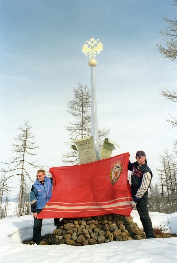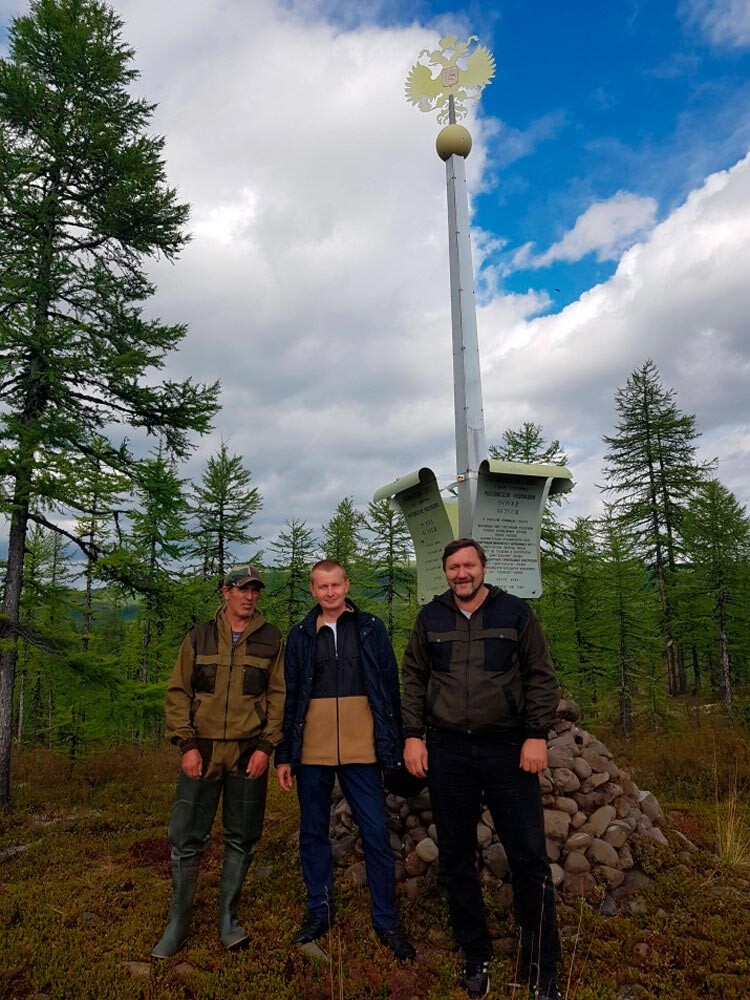 Красноярски краеведчески отдел на РГО В средата на август на 1992 година експедиция на Руското географско сдружение слага в региона седемметрова стела във формата на разцъфнало цвете с двуглавия орел на върха – признака на Русия. Дъното на стелата е украсено с камъни, събрани по крайбрежията на езерото. Екипът от откриватели слага там и капсула на времето.