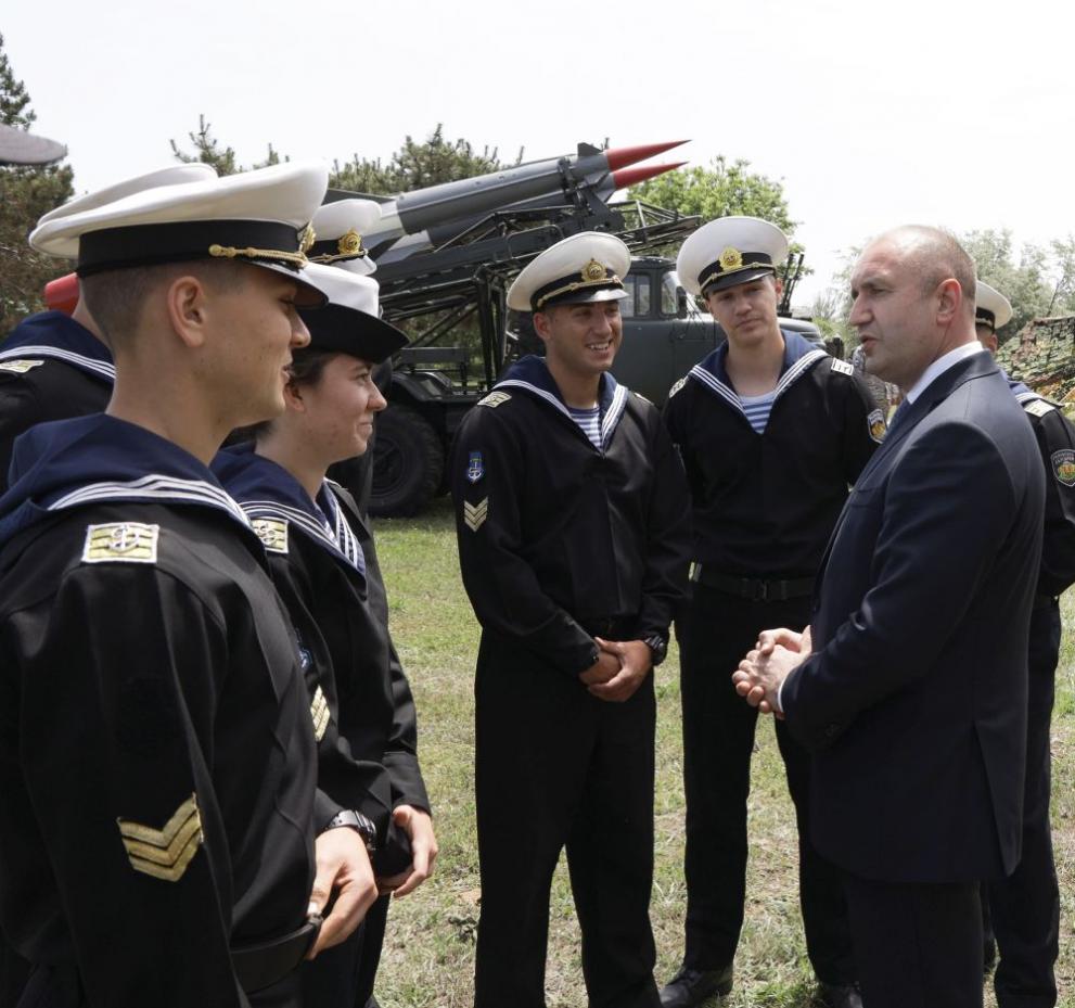 президенство Президентът и висш главнокомандващ на Въоръжените сили следи бойни стрелби на формирования за Противовъздушна отбрана от Българската войска, взаимни пробни и бойни стрелби по въздушни и надводни цели с авиационни формирования от Военновъздушни сили и Военноморски сили, и пукотевица с ракетни комплекси от Сухопътни войски и Съвместното командване на специфичните интервенции.